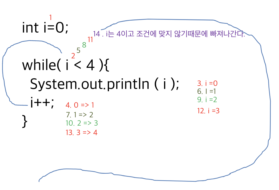 while(조건식){ // 조건식은 관계연산자, 논리연산자, method