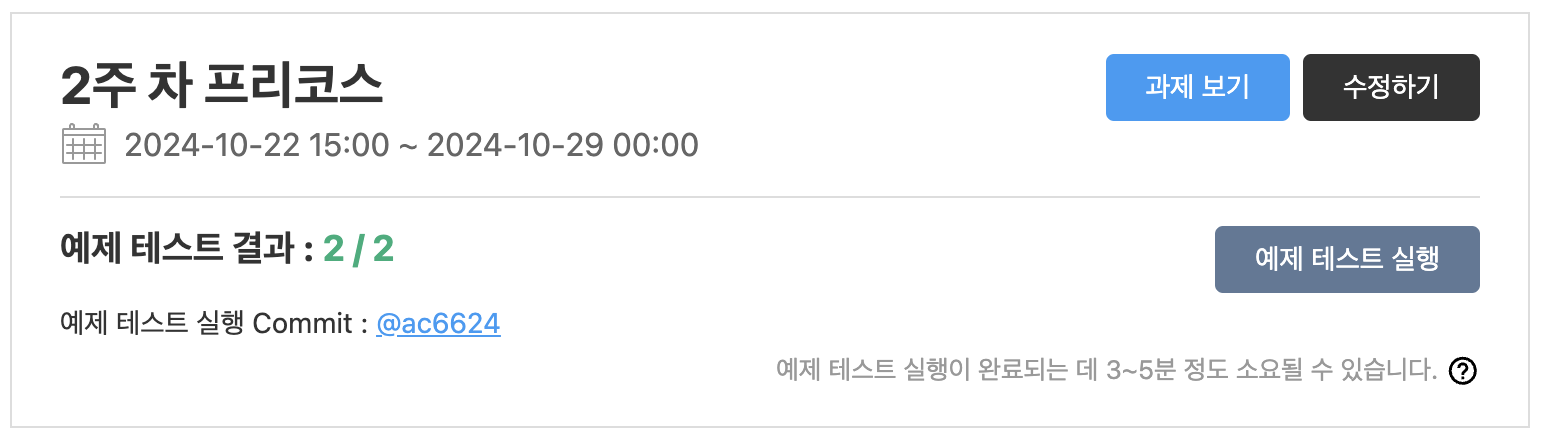 1주 차, 2주 차에서 해왔듯 남은 프리코스 기간 동안에도 세웠던 목표를 꾸준히 잘 달성해 나가면 될 것 같다.