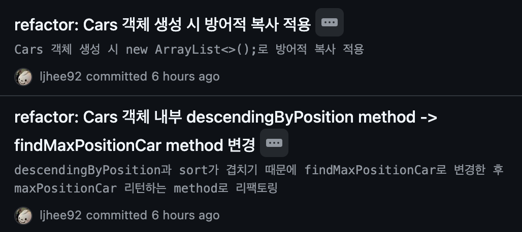 사실 7기 프리코스 시작 전 진행했던 스터디에서 자동차 경주 미션을 이미 한 번 시도했던 터라 리팩토링의 느낌이 강하지 않을까 싶었다.