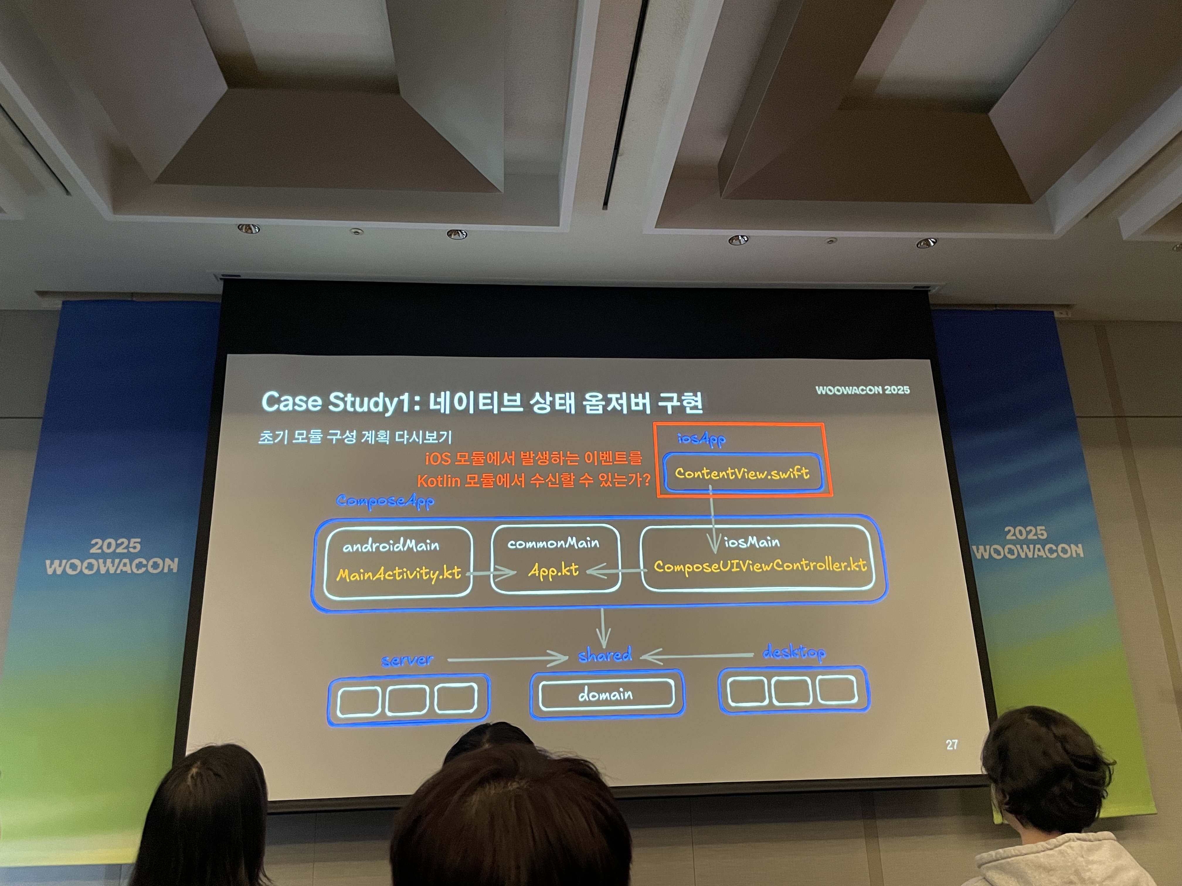 특히 흥미로웠던 부분은 네이티브 상태 옵저버 구현 케이스에서 보여주신 코드 중에 commonMain, androidMain, iosMain이 나뉘는 게 꼭 자바의 interface, 구체 클래스 같다는 느낌을 받았다는 점이다.