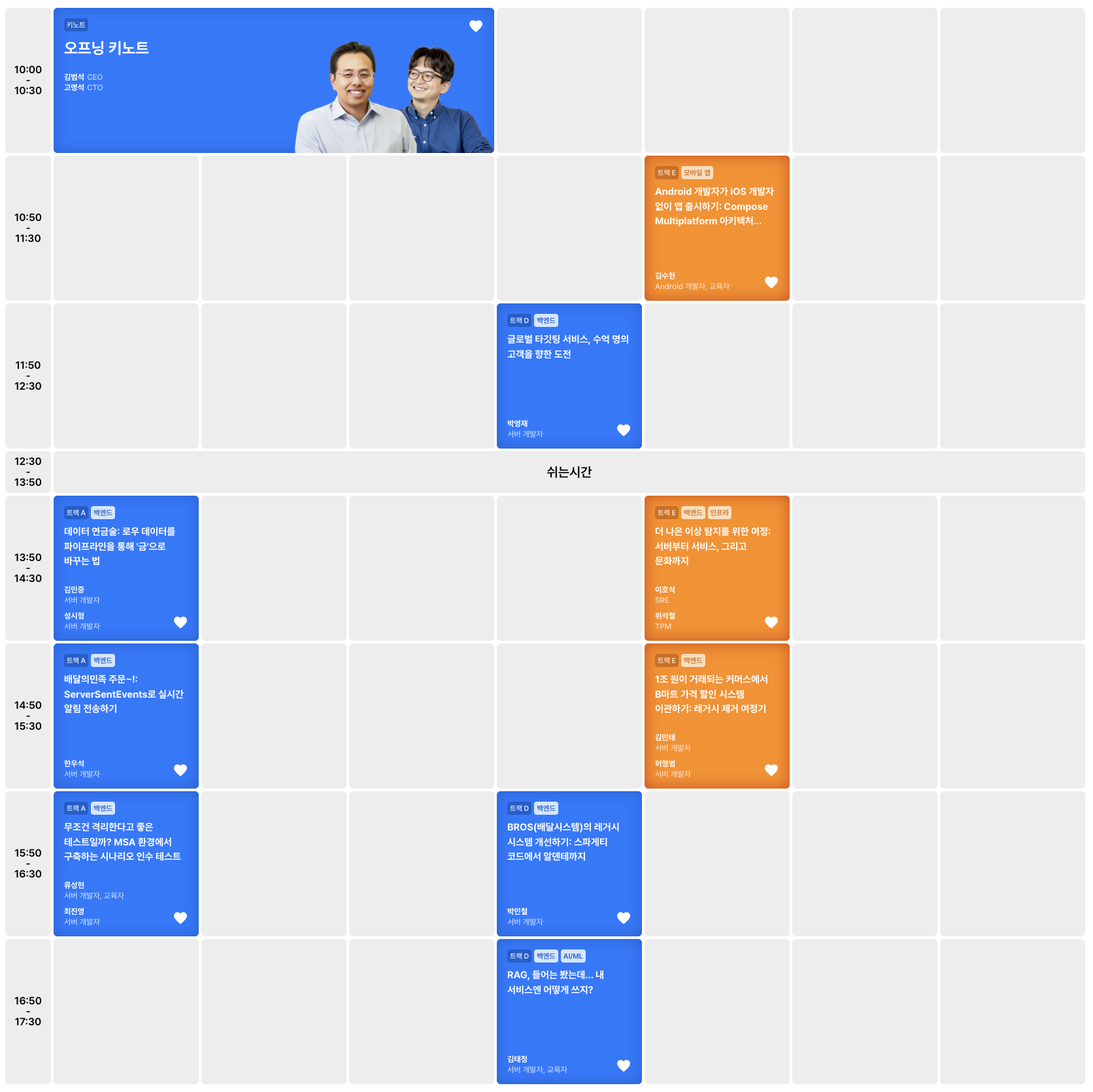 나는 주로 백엔드, 인프라와 관련된 세션에 관심이 있었다.