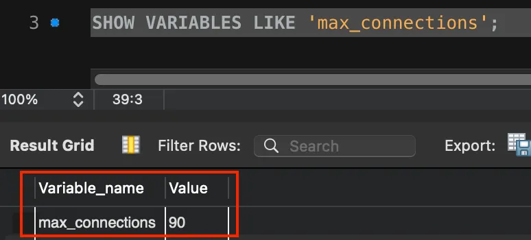 우리 RDS 인스턴스 타입은 t3.medium이었고, 명령어를 통해 확인해보니 기본으로 설정된 max_connections는 90개였다.